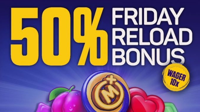 Имено, сите што ќе направат депозит во петок, од најмалку 10 евра и ќе го искористат бонус кодот RELOAD ќе си добијат 50% бонус до 1500 евра и 50 бесплатни спинови.